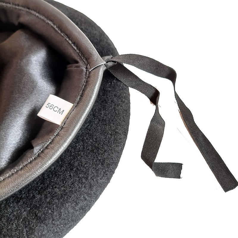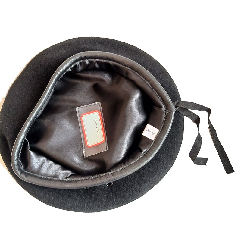 | *Item Name: | Good quality black woolen beret with nature leather binding wrap | ||